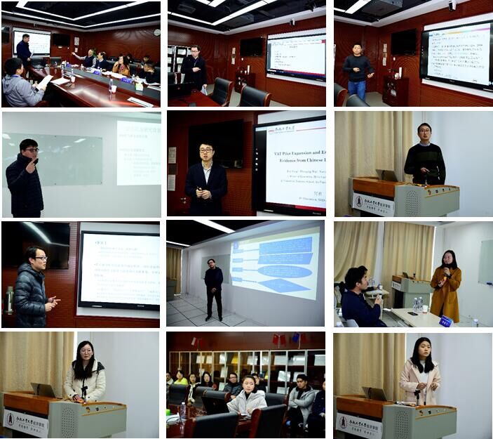 12月8日,英国威廉希尔唯一官网英国威廉希尔唯一官网师生集中汇报了12篇论文。在专场一,时省报告了《VAT Pilot Expansion and Enterprise Upgrading: Evidence from Chinese Listed Companies》,朱晨老师报告了论文《文化差异、社会融合与城市移民创业》,王宇新报告了论文《中国农村中老年人健康的精准扶贫:社会资本的视角》,吴文生报告了论文《官员更替对企业融资约束的影响研究》,刘晴报告了论文《贸易政策不确定性对企业内外销关系的影响》,常媛媛汇报了论文《水资源费改税试点地区的涉水主体的博弈关系研究》。在专场二,葛阳琴分享了论文《参与全球生产网络与东亚价值链提升》,彭飞报告了论文《为减税而扩张:兼论“营改增”的要素配置效应》,刘晨跃报告了论文《政府干预、投资偏向与产能过剩》,宋平凡报告了论文《情绪的力量:语调影响了 P2P 借款效果吗?》,朱赛华汇报了论文《反倾销、出口产品组合与多产品企业生产率》,刘佳佳汇报了论文《开发区竞争与企业出口产品质量升级》。各校专家和各编辑部编辑对论文提出了丰富的完善建议。