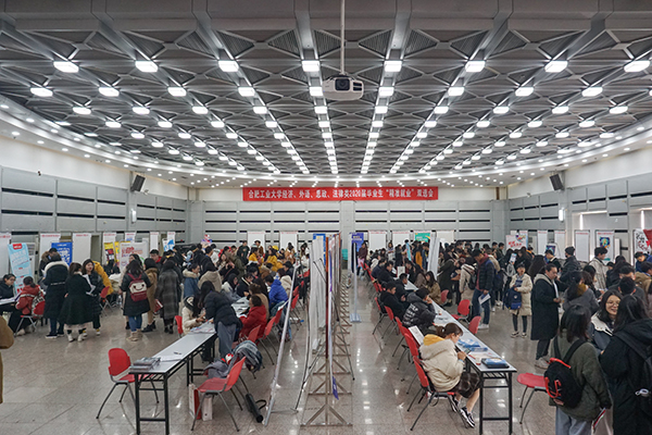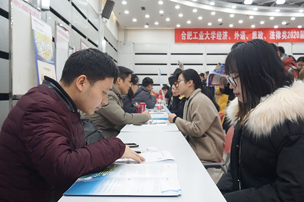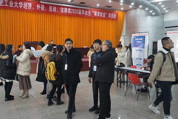 12月27日上午,我校经济、外语、思政、法律类2020届毕业生“精准就业”双选会在翡翠湖校区综合楼301宣讲厅举行。本次双选会邀请了中国平安保险集团、中信证券股份有限公司、安信证券股份有限公司、澳门国际银行、深圳康佳电子科技有限公司、安徽海螺水泥股份有限公司、安徽轻工国际贸易股份有限公司、安徽安粮集团有限公司、容诚会计师事务所、安徽建工建筑材料有限公司、安徽永锋防护科技股份有限公司、合肥新东方培训学校有限公司等43家优质企业参会,招聘岗位涵盖经济类、金融类、国际经济与贸易类、管理类、统计类、英语类、政治学类以及法律类等多个专业,为我校2020届毕业生提供了1100余个就业岗位。
