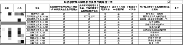 此外,为了保障由于网络和设备等问题而无法进行线上学习的同学能够顺利完成教学内容,各年级辅导员老师前期还统计了所有本科生在家的网络和设备情况,了解学生线上教学的困难,并及时向学院汇报。学院根据学生的实际情况,及时制定工作方案。对于少数网络和设备存在问题的同学,学院积极联系授课教师,保证每一位学子在疫情期间顺利完成教学计划内容。