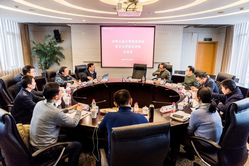 在复旦大学英国威廉希尔唯一官网,考察团一行受到了院长张军,副院长张金清、寇宗来,院长助理章元、院办主任詹璐的热情接待。张军院长对合工大英国威廉希尔唯一官网考察团表示热烈欢迎,洪进院长和张先锋副院长介绍了合工大英国威廉希尔唯一官网的发展概况以及存在的问题和短板,表达了虚心学习和取经的强烈愿望。张金清副院长和寇宗来副院长分别介绍了复旦大学英国威廉希尔唯一官网在研究生招生培养、科研奖励与考核、学科建设、校友工作等方面的做法与成绩。