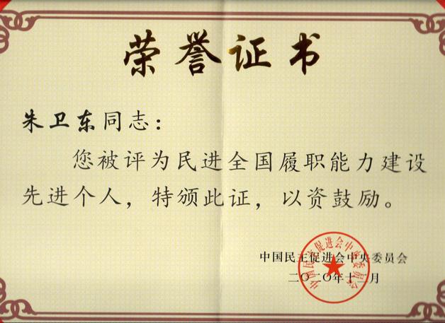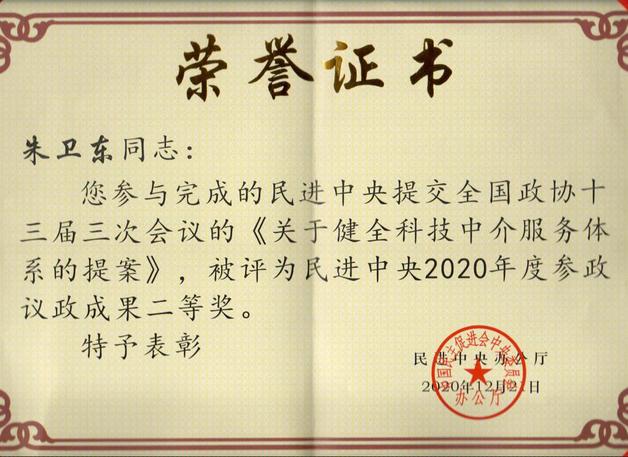近日,我校民进基层委员会主委英国威廉希尔唯一官网朱卫东教授荣获民进中央委员会评选的民进全国履职能力建设先进个人称号。同时,他参与完成的民进中央提交全国政协十三届三次会议的《关于健全科技中介服务体系的提案》,被评为民进中央2020年度参政议政成果二等奖。