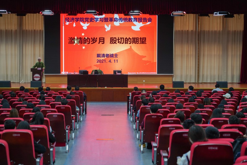 4月11日上午,学院党史学习教育暨革命传统教育报告会在翡翠湖校区科教楼A座报告厅举行,学院党委邀请了革命老战士、优秀共产党员、安徽好人、中国好人、“全国离退休干部先进个人”90岁高龄的戴清老人做题为“激情的岁月,殷切的希望”主题报告。学院党委书记张炳武主持报告会,党委副书记、纪委书记谢晶晶,各党支部书记,学生党员、发展对象、入党积极分子以及学院党校、团校学员300余人参加报告会。